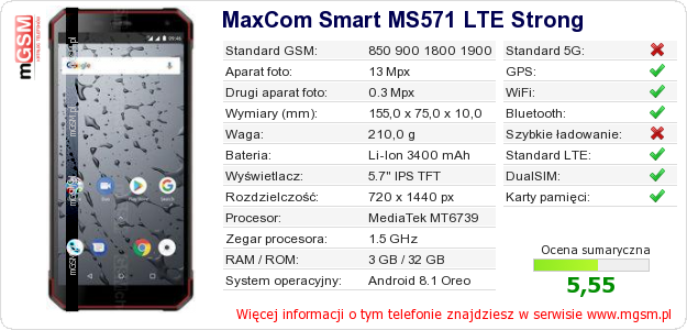 Dane telefonu MaxCom Smart MS571 LTE Strong na Twojej stronie