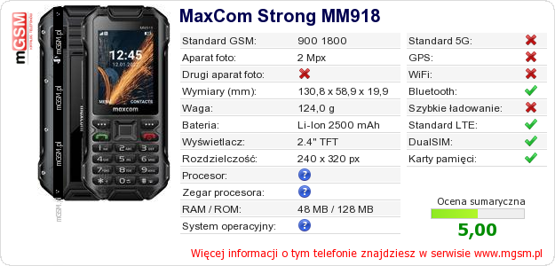 Dane telefonu MaxCom Strong MM918 na Twojej stronie