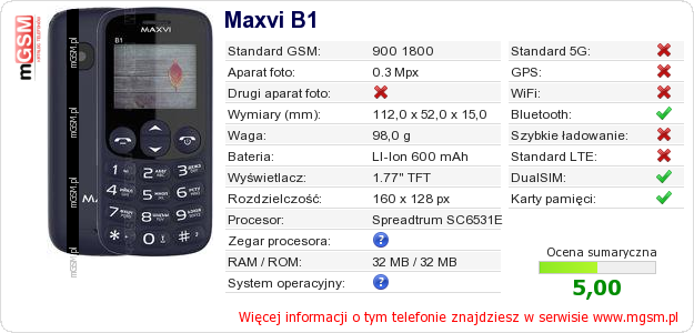 Dane telefonu Maxvi B1 na Twojej stronie