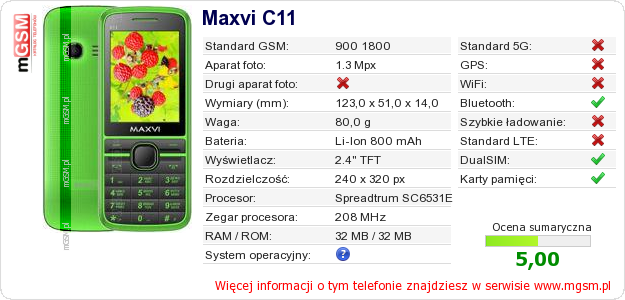 Dane telefonu Maxvi C11 na Twojej stronie