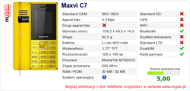 Dane telefonu Maxvi C7 na Twojej stronie