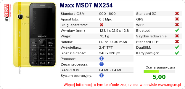 Dane telefonu Maxx MSD7 MX254 na Twojej stronie