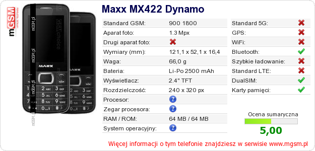 Dane telefonu Maxx MX422 Dynamo na Twojej stronie