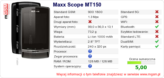 Dane telefonu Maxx Scope MT150 na Twojej stronie