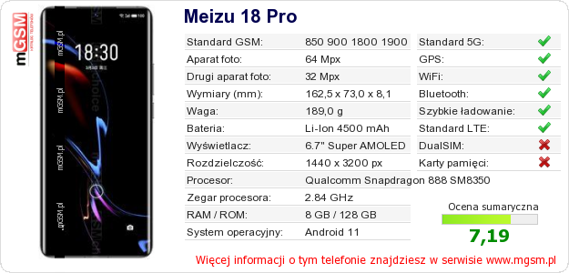 Dane telefonu Meizu 18 Pro na Twojej stronie