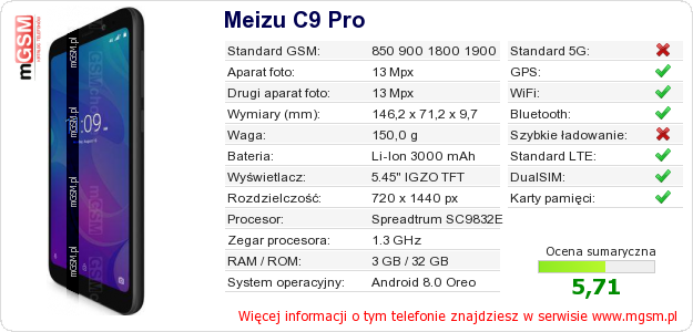 Dane telefonu Meizu C9 Pro na Twojej stronie