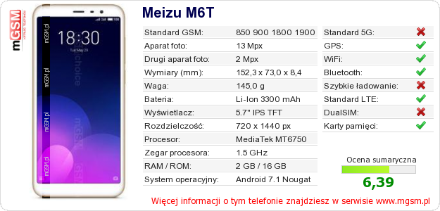 Dane telefonu Meizu M6T na Twojej stronie