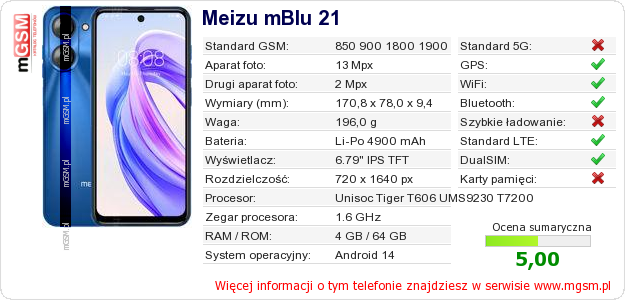 Dane telefonu Meizu mBlu 21 na Twojej stronie