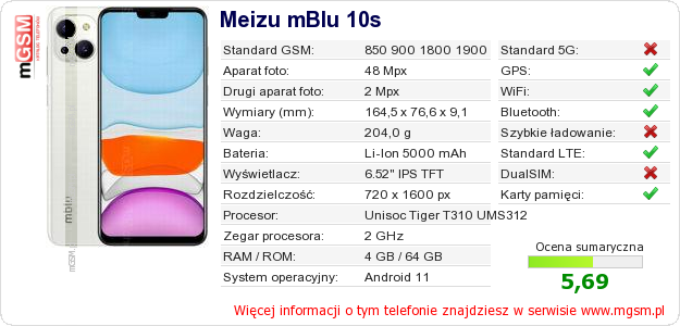 Dane telefonu Meizu mBlu 10s na Twojej stronie