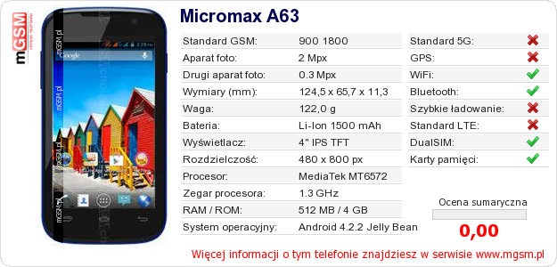 Dane telefonu Micromax A63 na Twojej stronie