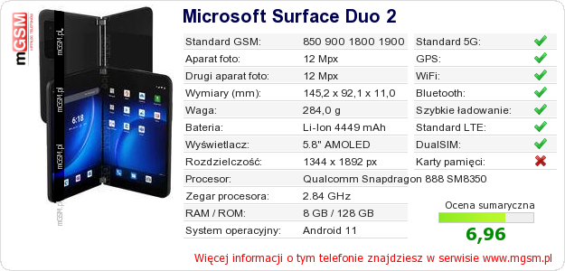 Dane telefonu Microsoft Surface Duo 2 na Twojej stronie