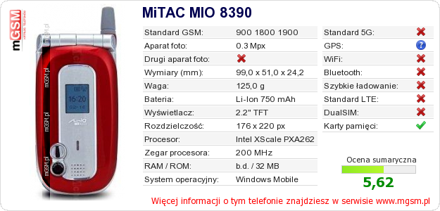 Dane telefonu MiTAC MIO 8390 na Twojej stronie