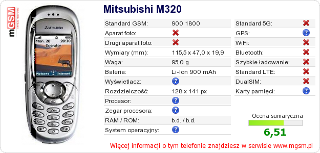 Dane telefonu Mitsubishi M320 na Twojej stronie