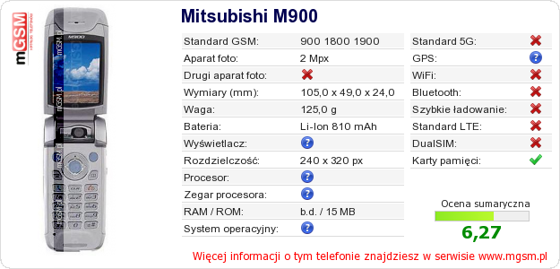 Dane telefonu Mitsubishi M900 na Twojej stronie