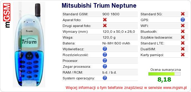 Dane telefonu Mitsubishi Trium Neptune na Twojej stronie