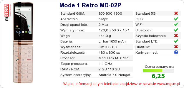 Dane telefonu Mode 1 Retro MD-02P na Twojej stronie