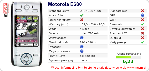 Dane telefonu Motorola E680 na Twojej stronie