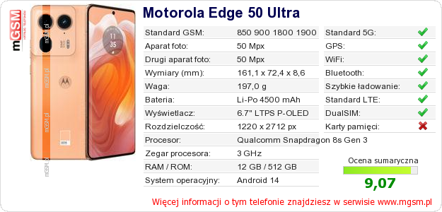 Dane telefonu Motorola Edge 50 Ultra na Twojej stronie