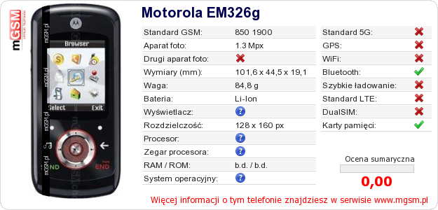Dane telefonu Motorola EM326g na Twojej stronie