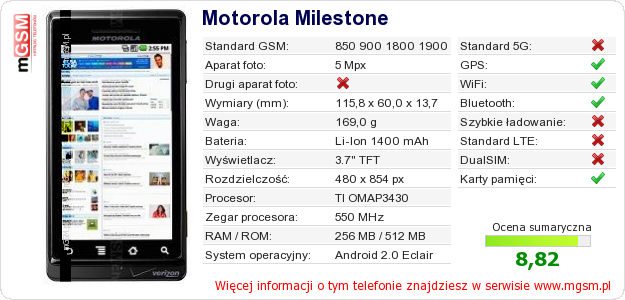 Dane telefonu Motorola Milestone na Twojej stronie