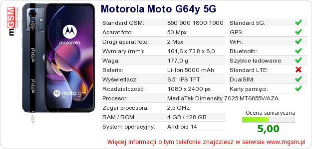 Dane telefonu Motorola Moto G64y 5G na Twojej stronie