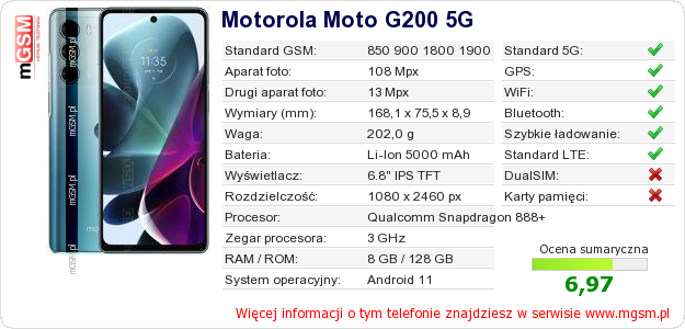 Dane telefonu Motorola Moto G200 5G na Twojej stronie