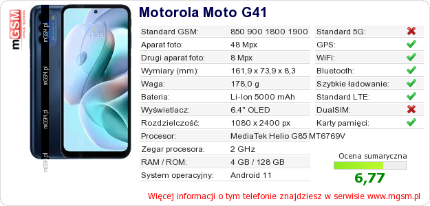 Dane telefonu Motorola Moto G41 na Twojej stronie