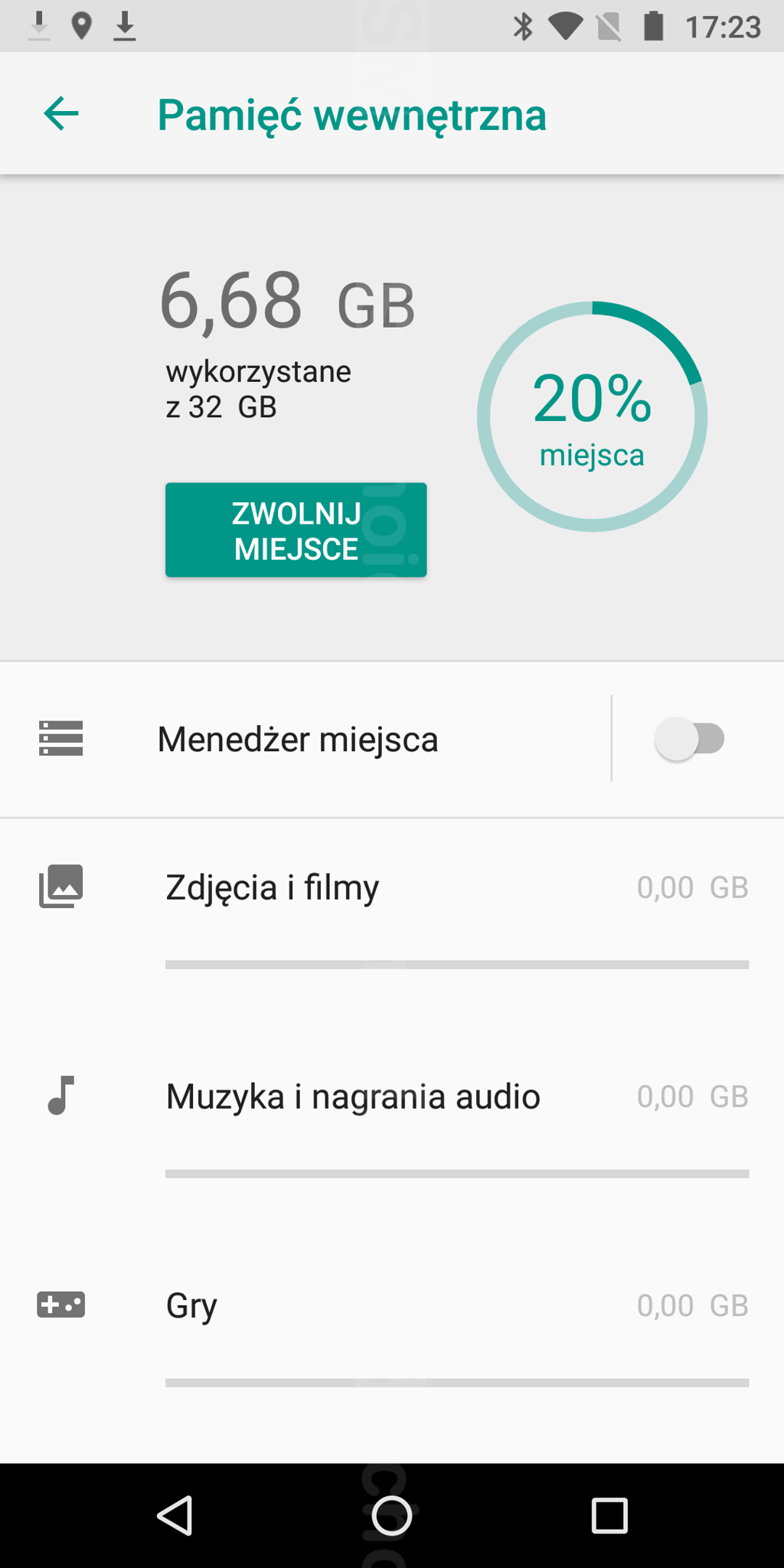 Moto G6 dysponuje 32 GB pamięci wewnętrznej - w praktyce do wykorzystania pozostaje około 80% tej przestrzeni (tj. 25,3 GB). Nie zapomnijmy o obsłudze kart microSD (do 128 GB), która służy tu wyłącznie do przenoszenia zdjęć i multimediów. Nośnik pamięci nie dzieli slotu z kartą SIM, stąd nie trzeba rezygnować z opcji dual-SIM na rzecz zamontowania karty microSD.