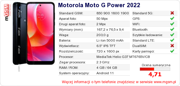 Dane telefonu Motorola Moto G Power 2022 na Twojej stronie