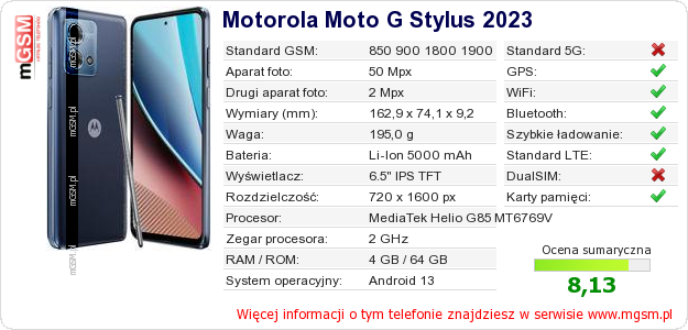 Dane telefonu Motorola Moto G Stylus 2023 na Twojej stronie