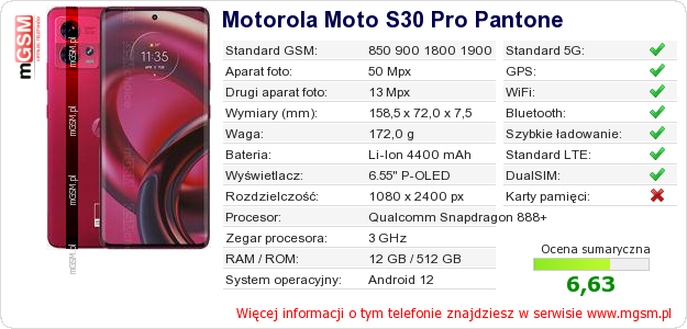 Dane telefonu Motorola Moto S30 Pro Pantone na Twojej stronie