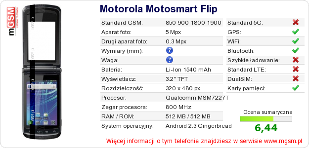 Dane telefonu Motorola Motosmart Flip na Twojej stronie