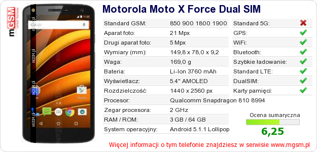 Dane telefonu Motorola Moto X Force Dual SIM na Twojej stronie