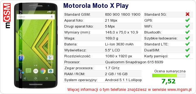 Dane telefonu Motorola Moto X Play na Twojej stronie