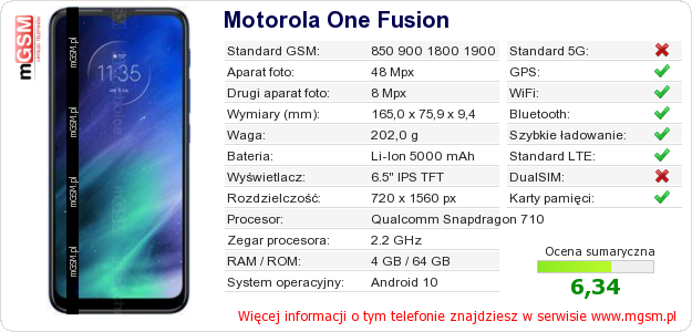 Dane telefonu Motorola One Fusion na Twojej stronie