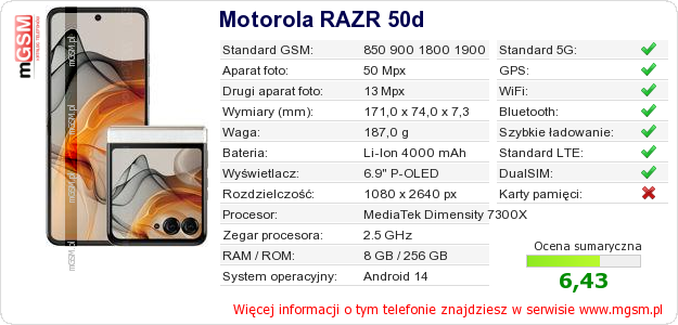 Dane telefonu Motorola RAZR 50d na Twojej stronie