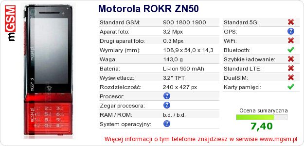 Dane telefonu Motorola ROKR ZN50 na Twojej stronie