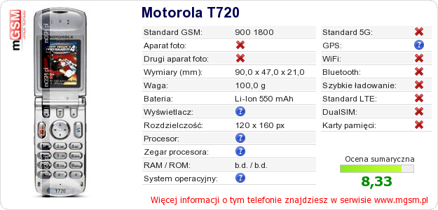 Dane telefonu Motorola T720 na Twojej stronie