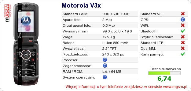 Dane telefonu Motorola V3x na Twojej stronie