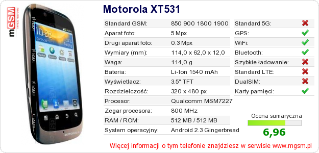 Dane telefonu Motorola XT531 na Twojej stronie