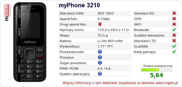 Dane telefonu myPhone 3210 na Twojej stronie