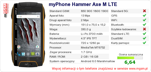 Dane telefonu myPhone Hammer Axe M LTE na Twojej stronie