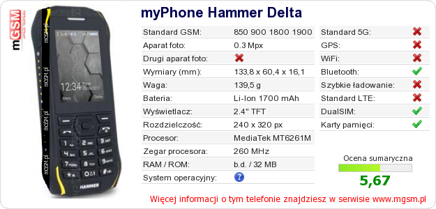 Dane telefonu myPhone Hammer Delta na Twojej stronie