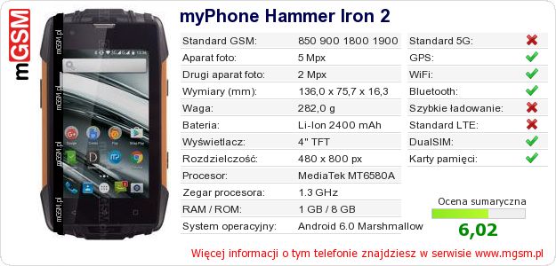 Dane telefonu myPhone Hammer Iron 2 na Twojej stronie