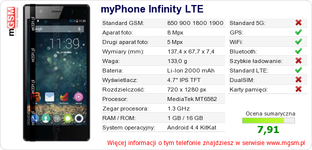 Dane telefonu myPhone Infinity LTE na Twojej stronie