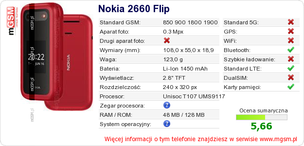 Dane telefonu Nokia 2660 Flip na Twojej stronie
