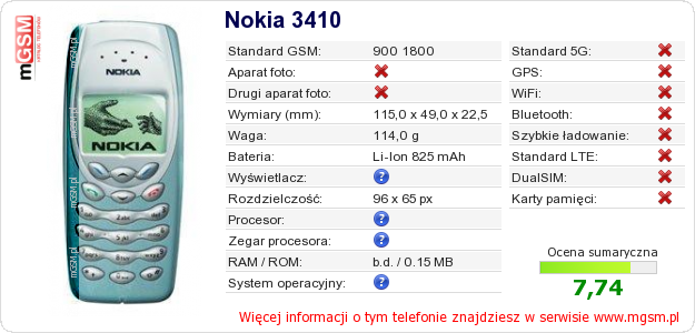 Dane telefonu Nokia 3410 na Twojej stronie