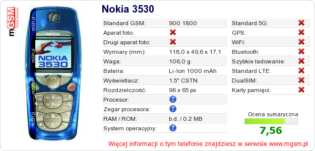 Dane telefonu Nokia 3530 na Twojej stronie