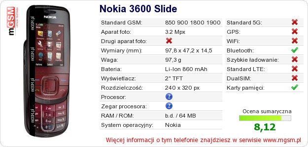 Dane telefonu Nokia 3600 Slide na Twojej stronie