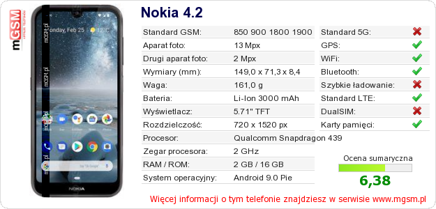 Dane telefonu Nokia 4.2 na Twojej stronie